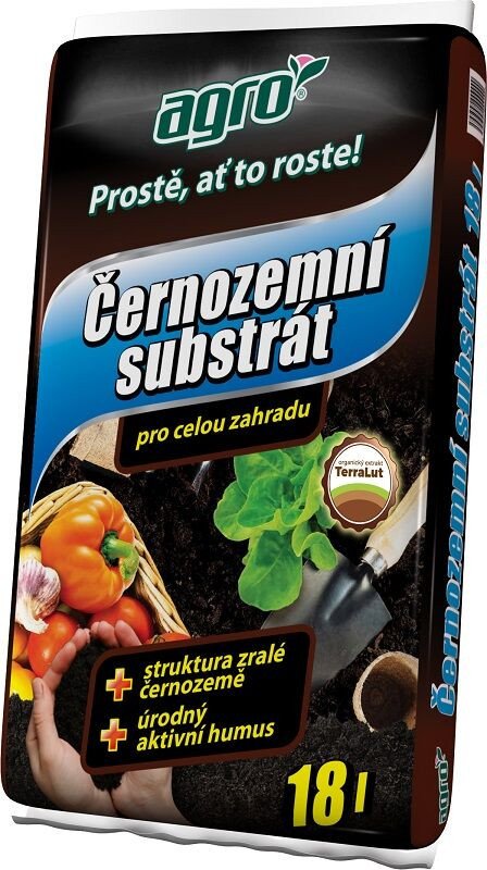 Agro Černozemný substrát pre celú záhradu je špeciálny substrát hrudkovitej a vláčnej štruktúry, pripomínajúcej tradičnú úrodnú černozem známu z oblasti Polabí alebo Podunajia. Ide o zmes kvalitnej čiernej rašeliny, vyzretej kôrovej húmusu a štartovacích živín.